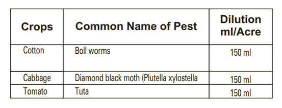 VERTA-FINISH suspension concentrate is a broad spectrum contact and stomach contact insecticide effective as a foliar spray for the control of insect pest of cotton & cabbage.